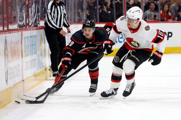 Ottawa Senators centre Tim Stützle may be haunted by a Game 2 giveaway that led to a Carolina goal and a shot that hit the post later in the night.Karl B DeBlaker/The Associated Press