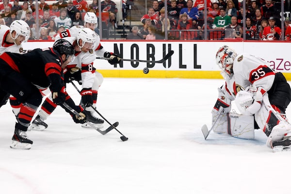 He had little-to-no chance on Carolina’s first goal when the Hurricanes, on a power play thanks to a poor penalty by Senators captain Brady Tkachuk, were able to go ahead on a good goal by Logan Stankoven.