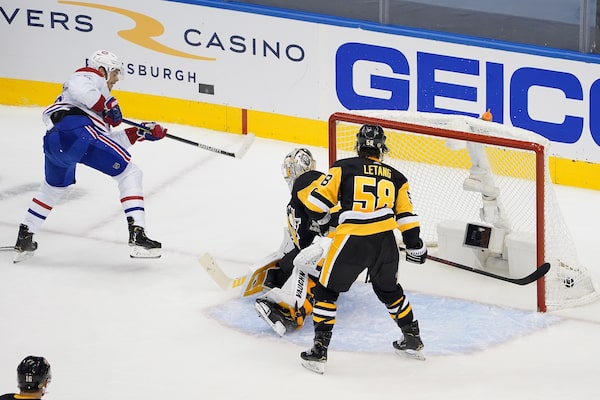 Jesperi Kotkaniemi of the Montreal Canadiens beats Pittsburgh Penguins goaltender Matt Murray for the Habs' lone goal. The Pens beat Montreal 3-1 on Aug. 3, 2020.Andre Ringuette/Freestyle Photo/Getty Images