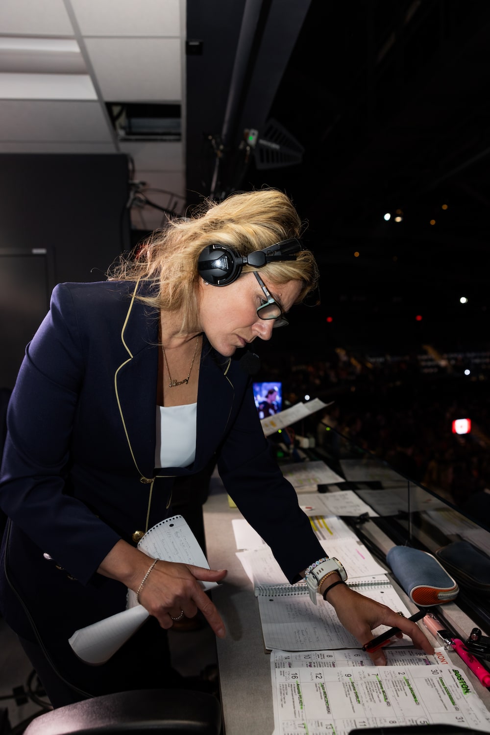 A former player with an engaging, excitable cadence, Pounder marvels on air at scenes such as Marie Philip-Poulin’s edge work, or how spicy the hits are. “Mark that,” she calls to the TV production truck during the game, pushing her talk-back button to request isolated clips so she can later break down that play for the audience. She learned it from her old teammate and broadcasting veteran, Cassie Campbell Pascal.