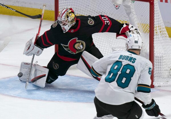 Drake Batherson was the only Ottawa player to beat James Reimer in the San Jose net. He finished with 30 saves.