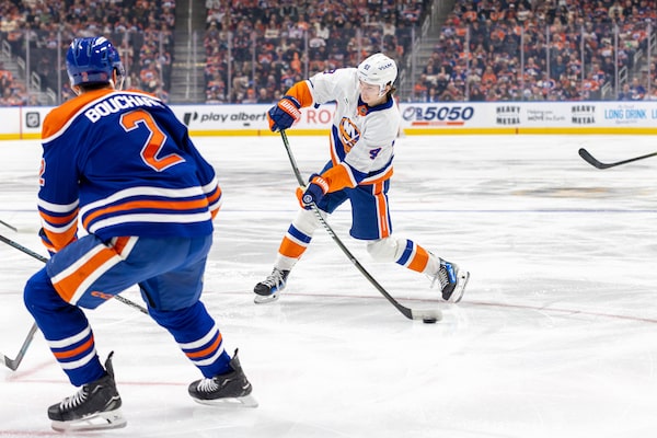New York Islanders' rookie Matthew Schaefer (48) is living up to his top-pick billing, with the blue liner scoring 35 points in the first 53 games of his career.FRED GREENSLADE/The Canadian Press
