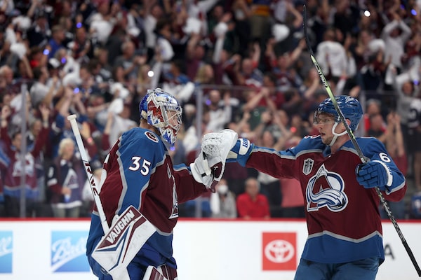 Andre Burakovsky had a goal and an assist, Josh Manson and Darren Helm also scored, Mikko Rantanen had three assists and Alex Newhook had two assists for the Avalanche.