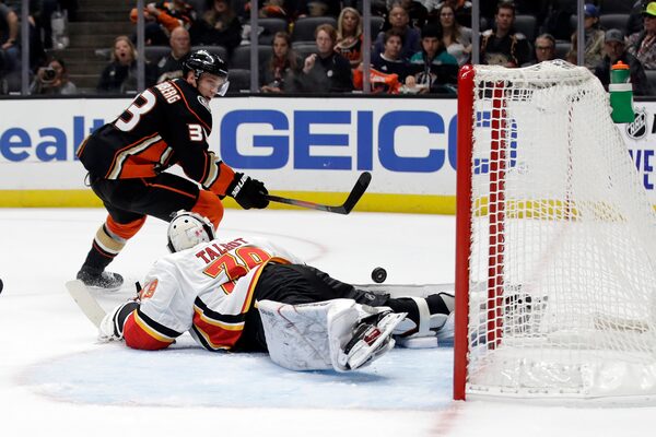 Talbot made 29 saves and Stone scored the Flames’ first goal as they rallied for a 2-1 victory over the Anaheim Ducks.