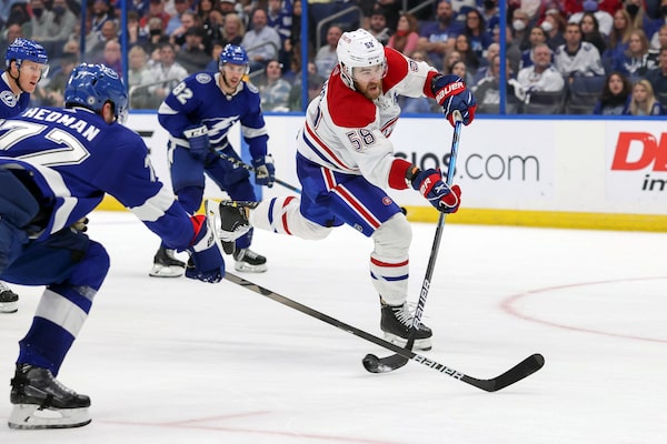 David Savard of the Montreal Canadiens scores against the Tampa Bay Lightning during the third period at the Amalie Arena in Tampa, Fla., on Dec. 28.Mike Carlson/Getty Images