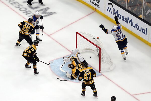 It was O’Reilly who opened the scoring Thursday off a nifty between-the-skates play by Zach Sanford that allowed O’Reilly to loft a quick backhand over Rask’s glove. It was O’Reilly’s third goal in two games.