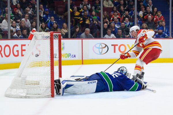 Calgary had a prime opportunity to add to its total earlier in the period when Vancouver’s Tyler Myers hooked Huberdeau on a breakaway and the Flames forward was awarded a penalty shot.