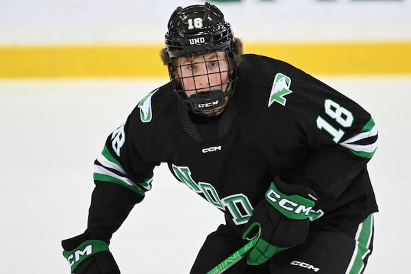 North Dakota defenceman Keaton Verhoeff plays against St. Cloud State in St. Cloud, Minn. earlier this season.Craig Lassig/The Associated Press