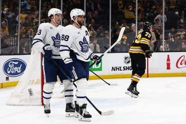 Boston’s Nikita Zadorov was called for a major boarding penalty with 2:07 left in the second, leading to a 4-on-3 power play and Domi’s goal on a backhand that put the Leafs up 2-1. Tavares, who was driven headfirst into the boards by Zadorov, assisted on the goal.