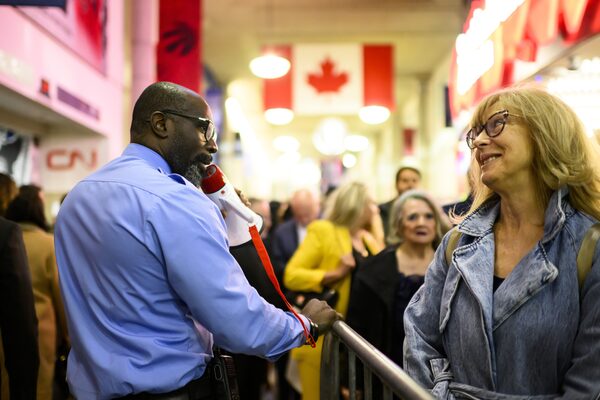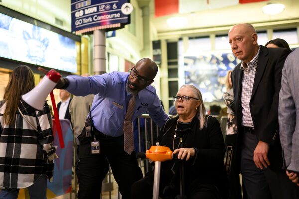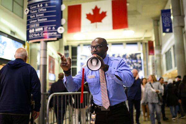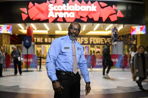He corrals hundreds upon hundreds of visitors into orderly lines at Gate 1 – the main entrance – to Toronto’s Scotiabank Arena. A mass of people who mostly have no idea where to go on the west side of the building.