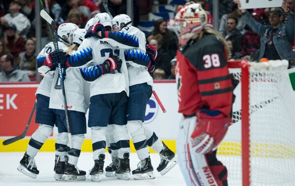 Dani Cameranesi also scored for the U.S., while Jocelyne Larocque replied for Canada. Shots were 26-12 in favour of the Americans.
