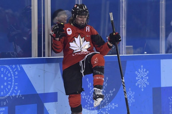 Canada forward Meghan Agosta celebrates her goal against the United States during a game at the 2018 Olympic Winter Games in Pyeongchang, South Korea.Nathan Denette/The Canadian Press