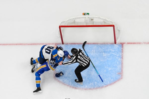Stastny intercepted a failed clearing attempt by Husso and backhanded the puck into the empty net for his 10th goal of the season with 5:37 remaining in the first period.