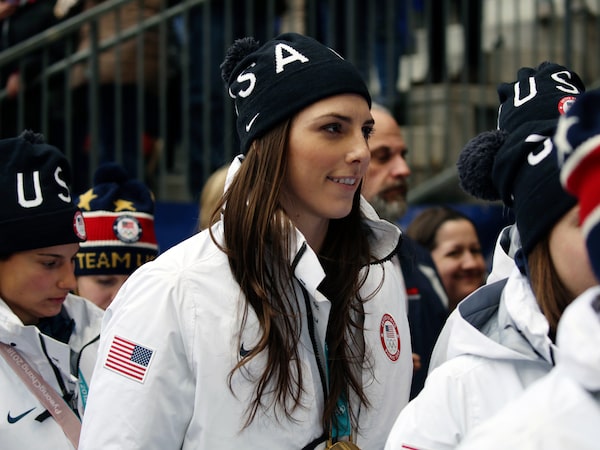 Hilary Knight, of the gold medal winning U.S. women's Olympic hockey team, attends a SheBelieves Cup women's soccer match between the US and France, in Harrison, N.J. on March 4, 2018.Steve Luciano/The Associated Press
