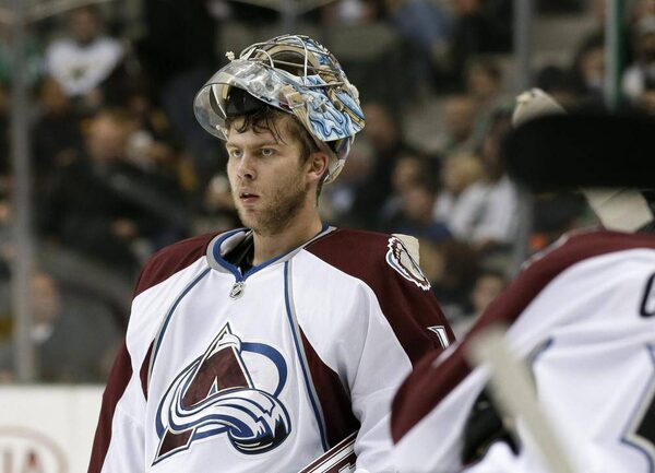 Colorado Avalanche goalie Semyon Varlamov (1), of Russia, stands by the bench during a timeout in the first period of an NHL hockey game against the Dallas Stars, Friday, Nov. 1, 2013, in Dallas. The Avs won 3-2.TONY GUTIERREZ/The Associated Press
