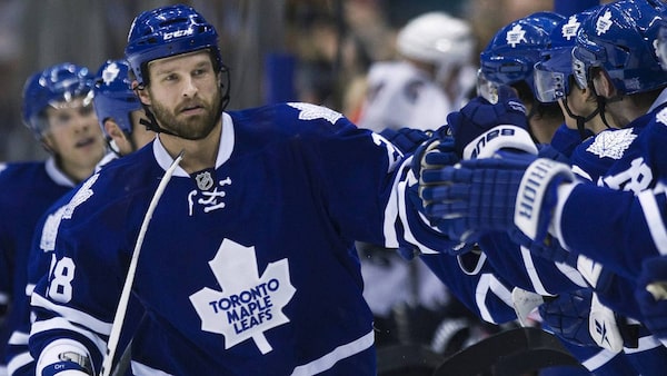 On Tuesday in a 3-1 win over the Florida Panthers, it was enforcer Colton Orr who finally answered that call, barrelling into netminder Scott Clemmensen with nine minutes left in the game and then tipping home teammate Tim Brent's shot for the winner.