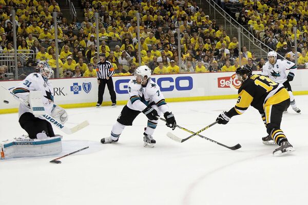 It was a game teetering in the balance. The Pittsburgh Penguins had roared out to an early two-goal lead and looked as if they would run the visiting San Jose Sharks out of the building. The Sharks settled it right down in the second period and squared the game. It went back-and-forth, up-and-down and for the longest time, it looked as if the opening game of the Stanley Cup final was headed to overtime.