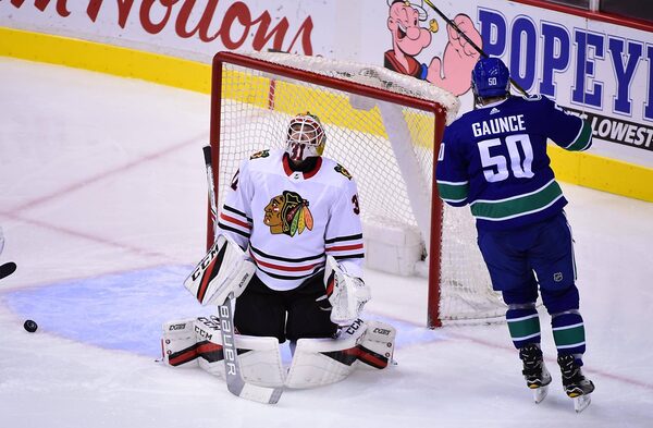 Canuck goaltender Jacob Markstrom stopped 26 shots. Chicago's Anton Forsberg, who was making his third straight start, stopped 17 shots.