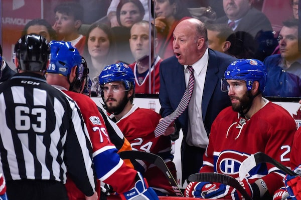 Montreal Canadiens head coach Claude Julien reacts to a call during Game 1 against the New York Rangers at the Bell Centre in Montreal, on April 12, 2017.