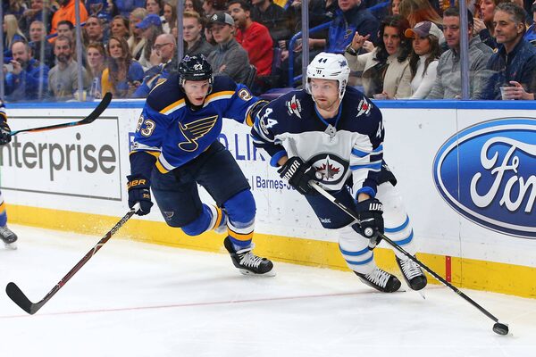 The Blues improved to 16-2-1 when scoring first while Winnipeg fell to 4-9-1 when surrendering the opening tally.