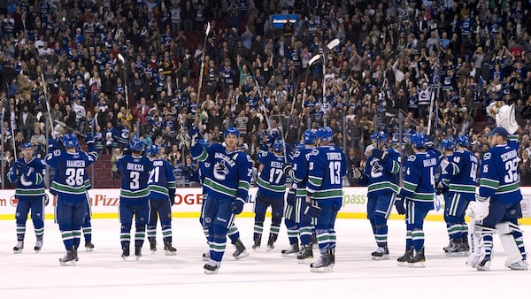 CANADA'S TEAM?: Quick aside: Will Vancouver become Canada's team, now that it looks as if only two of the six Canadian teams will qualify for the playoffs? The rivalries between Vancouver and Calgary and Vancouver and Edmonton are significant and deeply felt, so it may be difficult to sway much of Alberta to the national cause, but elsewhere? You'd have to think that purists who tune in to see the game played well will eventually fall in love with the Canucks. They are the highest-scoring team in the league; their power play is dynamic; and the Sedins are a wonderfully charming individuals, both of whom have come out of their shells over the past two seasons and seem comfortable in their respective skins in front of the TV cameras. Just so long as Roberto Luongo isn't coaxed into reading too much more poetry on the air, they should find Canada squarely behind as they attempt to negotiate the tricky waters of the Western Conference playoff race.