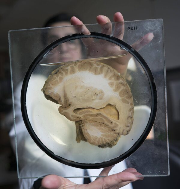 Dr. Lili-Naz Hazrati, a pathologist at SickKids hospital, displays a cross-section of a preserved human brain in her lab in the Toronto hospital on Thursday, December 29, 2016.J.P. MOCZULSKI/The Globe and Mail