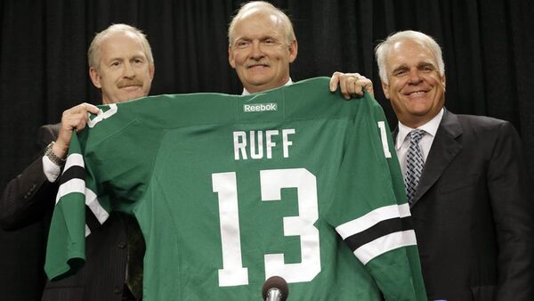 Dallas Stars general manager Jim Nill, left, introduces Lindy Ruff as the team's new head coachThe Associated Press
