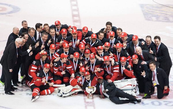Team Canada poses for the team photo after a 5-4 win over Russia to capture the Gold medal game of the 2015 IIHF World Junior Championship on January 05, 2015 at the Air Canada Centre in Toronto, Ontario, Canada.Dennis Pajot/Getty Images