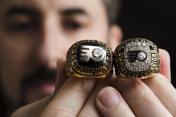 Philadelphia Flyers archives manager Brian McBride displays Flyers Stanley Cup rings in Philadelphia, on Wednesday.Matt Rourke/The Associated Press