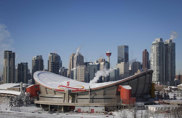 Steam rises from buildings near the Scotiabank Saddledome in Calgary, Alta., on Feb. 8, 2017.Jeff McIntosh/The Canadian Press