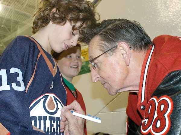 Walter Gretzky signs autographes during the filming of Waking Up Wally, in Edmonton on Tuesday, February 01, 2005. John Ulan/The Globe and MailJohn Ulan/The Globe and Mail
