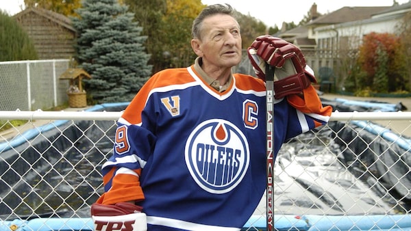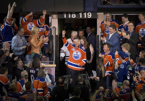 Walter Gretzky is honoured during the Vancouver Canucks and Edmonton Oilers NHL game at Rexall Place in Edmonton, Alta., on April 6, 2016.JASON FRANSON/The Canadian Press