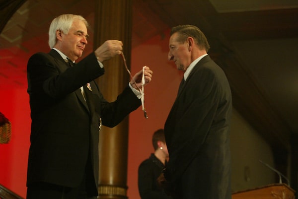 Walter Gretzky, Canada's best-known hockey dad, receives the Order of Ontario for his work with the Canadian Heart and Stroke Foundation and the CNIB, from Lieutenant Governor James Bartleman at a ceremony at Queen's Park in Toronto on February 5, 2003.Donald Weber/The Globe and Mail