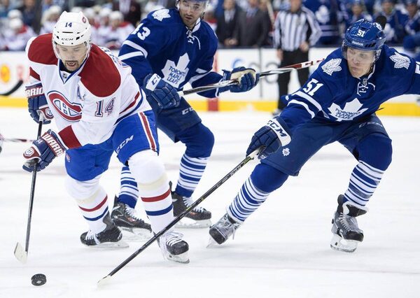 Toronto Maple Leafs defenceman Jake Gardiner tries to catch Montreal Canadiens Tomas PlekanecFrank Gunn/The Canadian Press
