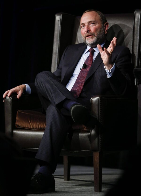 Playing on the rivalry between Calgary and its northern neighbour, Gary Bettman suggested that if Edmonton could get a ‘visionary’ new arena project approved via a private-public partnership, then Calgary should be able to manage it as well.Jeff McIntosh/The Canadian Press