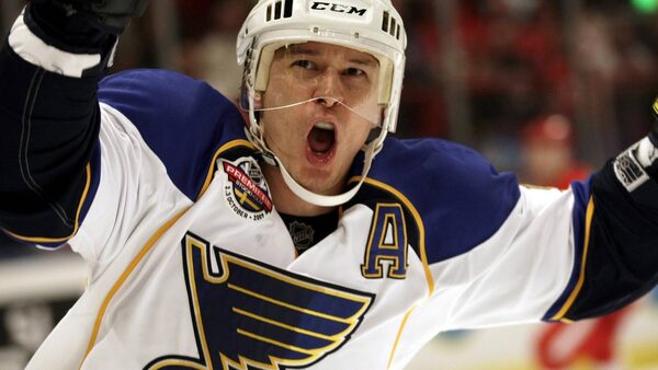 St. Louis Blues forward Paul Kariya reacts after scoring his second goal during their game against the Detroit Red Wings in Stockholm on Friday.NIKLAS LARSSON