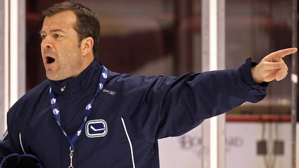 Vancouver Canucks head coach Alain Vigneault directs his players during team practice in Vancouver, B.C., on Tuesday April 14, 2009. The Canucks open their NHL Western Conference quarterfinal playoff series against the St. Louis Blues Wednesday in Vancouver. THE CANADIAN PRESS/Darryl DyckDARRYL DYCK/The Canadian Press