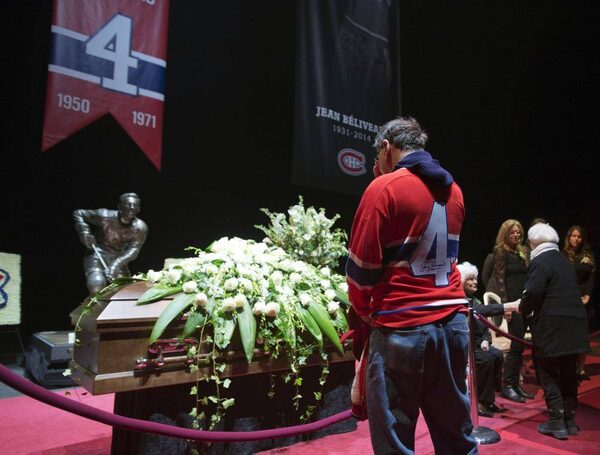 A mourner pays his respects to Jean Beliveau during the visitation at the Bell Center, Monday, December 8, 2014 in Montreal. The Montreal Canadiens hockey legend passed away Tuesday, Dec. 2, 2014 at the age of 83.Ryan Remiorz/The Canadian Press