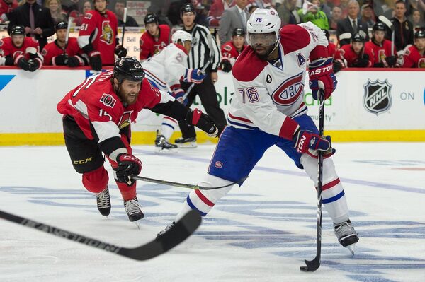 Montreal Canadiens defenceman P.K. Subban carries the puck during Game 6 of the Habs’ opening-round series with the Ottawa Senators at Canadian Tire Centre in Ottawa. The Canadiens won the series in six games.Marc DesRosiers