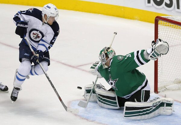 Winnipeg had good chances on the power play midway through the period, but Lehtonen stopped an in-close backhand by Ladd and kicked away a redirected shot.