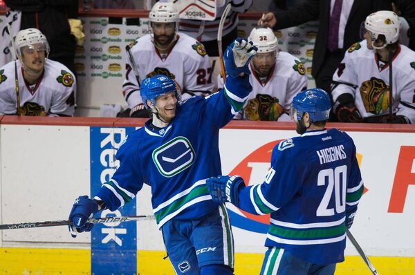 Vancouver Canucks' Jannik Hansen and Chris Higgins celebrateDARRYL DYCK/The Canadian Press
