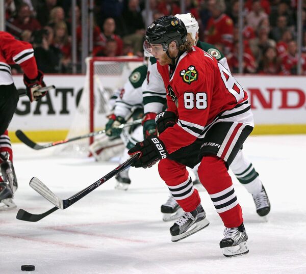 Patrick Kane #88 of the Chicago Blackhawks controls the puck in the third period against the Minnesota Wild in Game Two of the Western Conference Semifinals during the 2015 NHL Stanley Cup Playoffs at the United Center on May 1, 2015 in Chicago, Illinois.Jonathan Daniel/Getty Images
