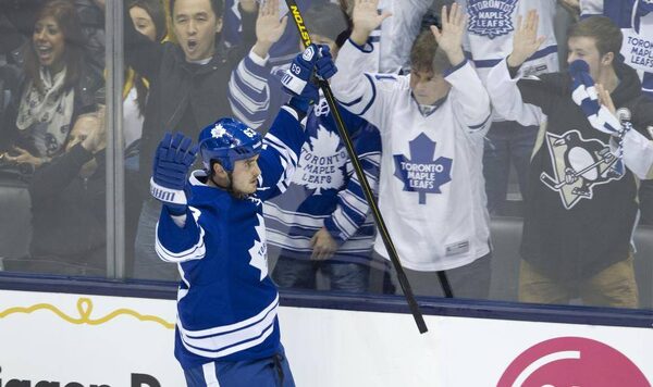 Leafs Dave Bolland (63) gets a short-handed goal during the first period of the NHL game between the Pittsburgh Penguins and the Toronto Maple Leafs at the ACC in Toronto, Ontario on Oct. 26, 2013.Peter Power/The Globe and Mail