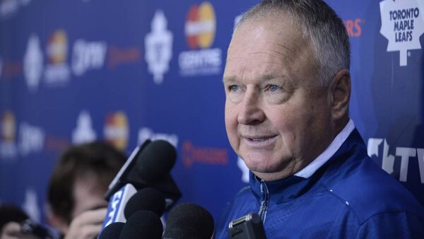Randy Carlyle, head coach of the Toronto Maple Leaf hockey team holds a media scrum after training camp at the MasterCard Centre on Sept 12 2013.The Globe and Mail