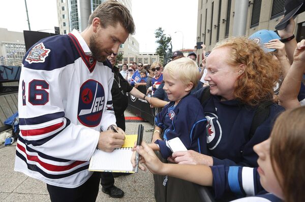 Winnipeg Jets forward Blake Wheeler signs autographs for fans after the National Hockey League announce the rosters for the Heritage Classic regular-season and alumni games.John Woods/The Canadian Press
