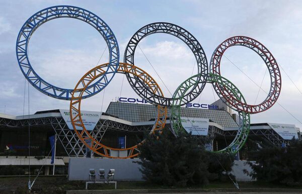 The Olympic rings are seen in front of the airport of Sochi, the host city for the Sochi 2014 Winter Olympics, February 18, 2013. The Sochi 2014 Winter Olympics opens on February 7, 2014.KAI PFAFFENBACH/Reuters