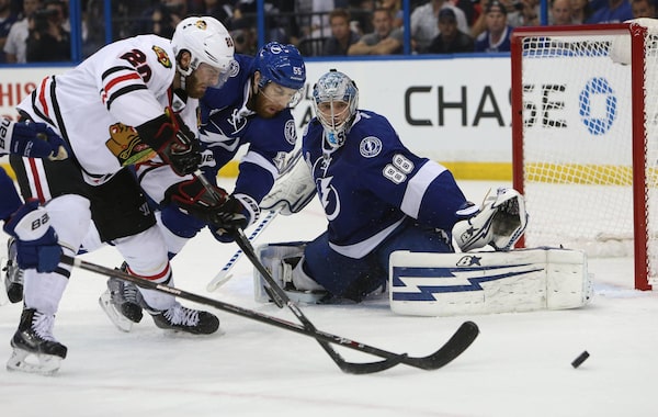 On one side of the room, defenceman Anton Stralman was playing coy when asked, several times, why starting netminder Ben Bishop had twice left what became a 4-3 win over the Chicago Blackhawks in the third period.