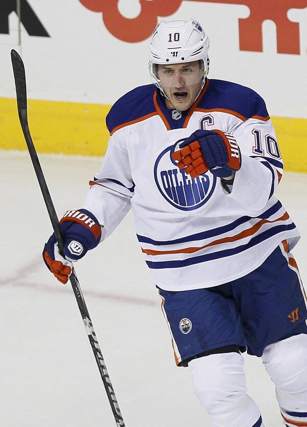 Edmonton Oilers Shawn Horcoff celebrates a first period goal against the Colorado Avalanche in their NHL game in Denver March 12, 2013.RICK WILKING/Reuters