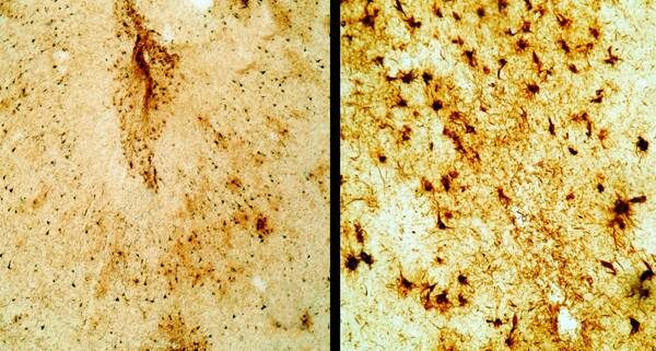 Like Alzheimer's, the disease results in a progressive decline in memory and brain power and eventually leads to dementia. Symptoms also include depression, suicidal behaviour, personality changes and poor impulse control. It is now diagnosed, after death, by a highly unusual buildup of a protein, called tau, that clogs and kills the brains of Alzheimer's patients. But in Alzheimer's there is also a buildup of clumps of aberrant protein called amyloid plaques. This isn't the case with CTE, so while the symptoms of the two diseases are similar, the patterns of damage are distinctive.
