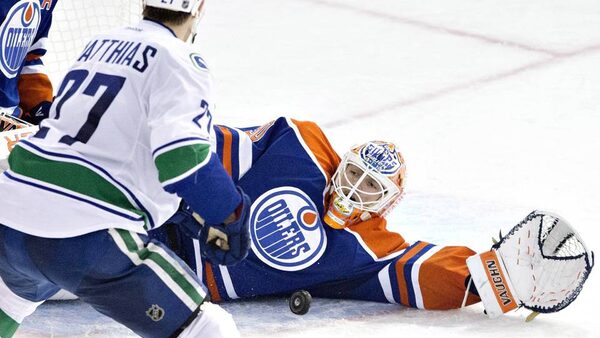 The Canucks went up 1-0 with four minutes to play in the first period, thanks to a short-handed goal. Shawn Matthias picked off a Ryan Nugent-Hopkins pass at the Edmonton blue-line and sent Hansen in on a breakaway, where he was able to beat Oilers goalie Ben Scrivens glove-side.